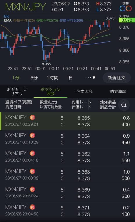 このアプリでは、チャートやニュースなどの情報を見ることができますし、注文や決済もスムーズに行えます。