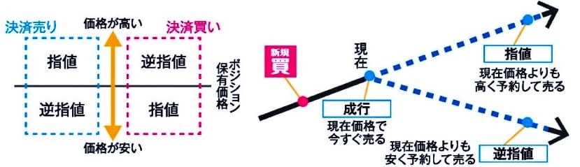 現在価格よりも安くなったら買いたい、または高くなったら売りたいときに使います。